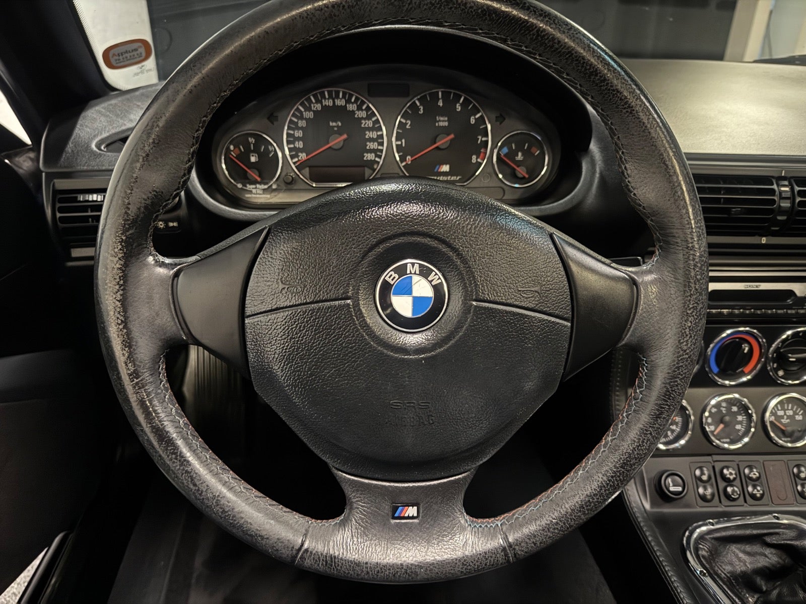 Originalt interiør med sorte M-sportsæder og M-rat